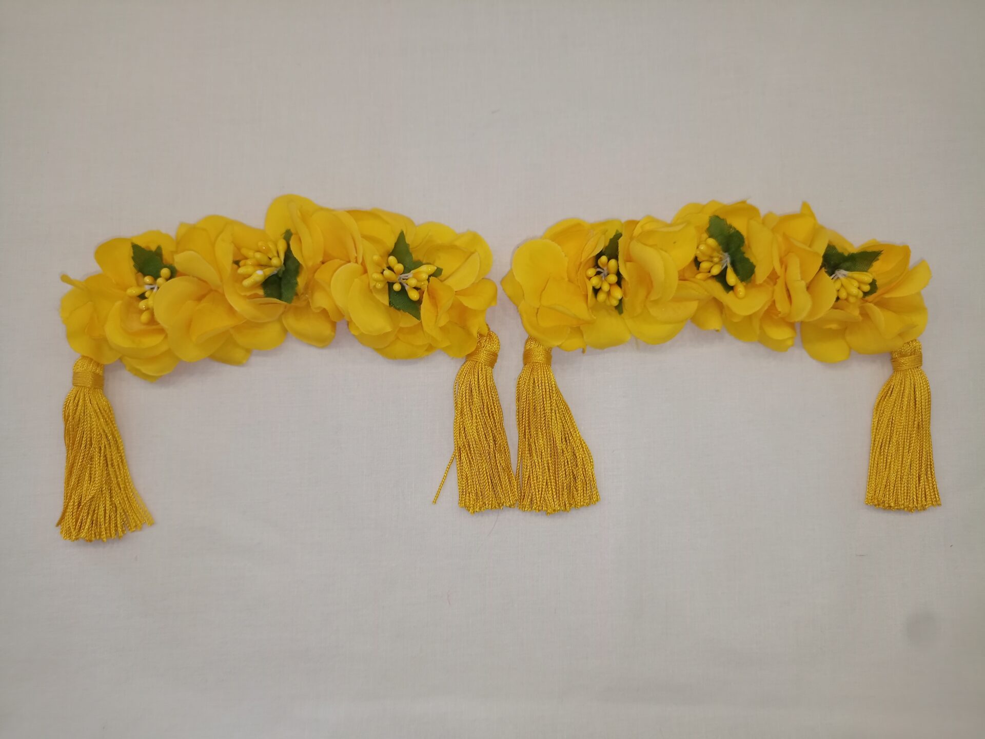 Hombrera de flamenca pequeña amarillas con una borla de flecos en cada extremo.