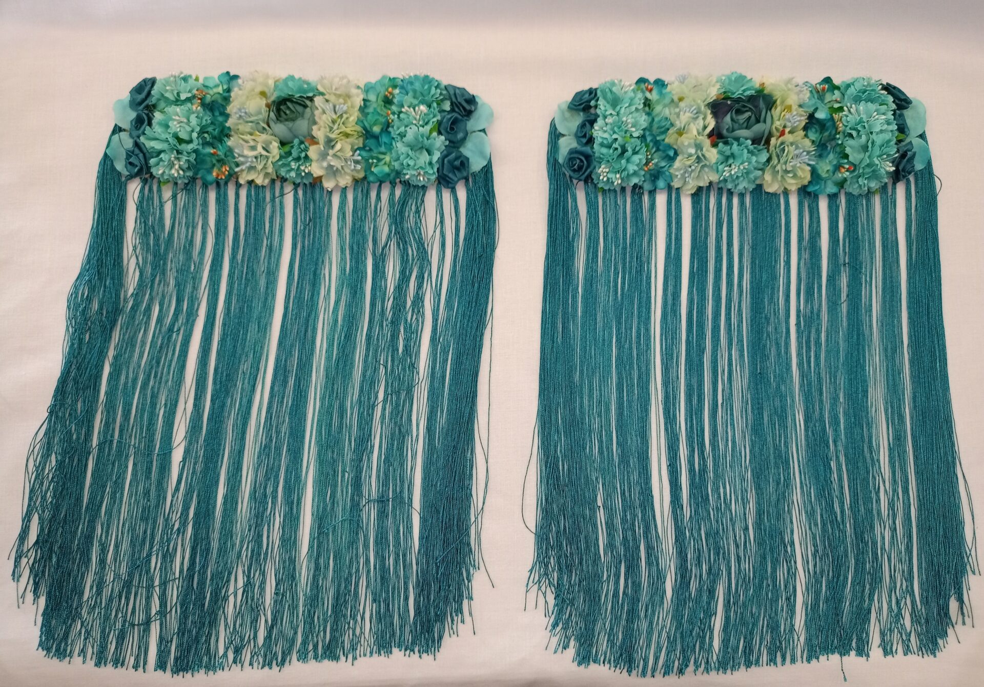 Hombreras de flamenca verde agua con fleco largo cantidad
