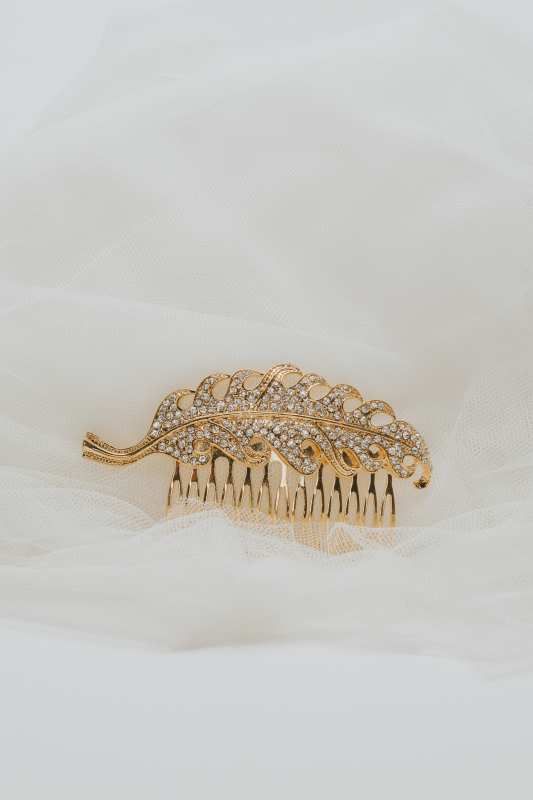 Peinecillo en forma de hoja de acanto en dorado y zirconitas
