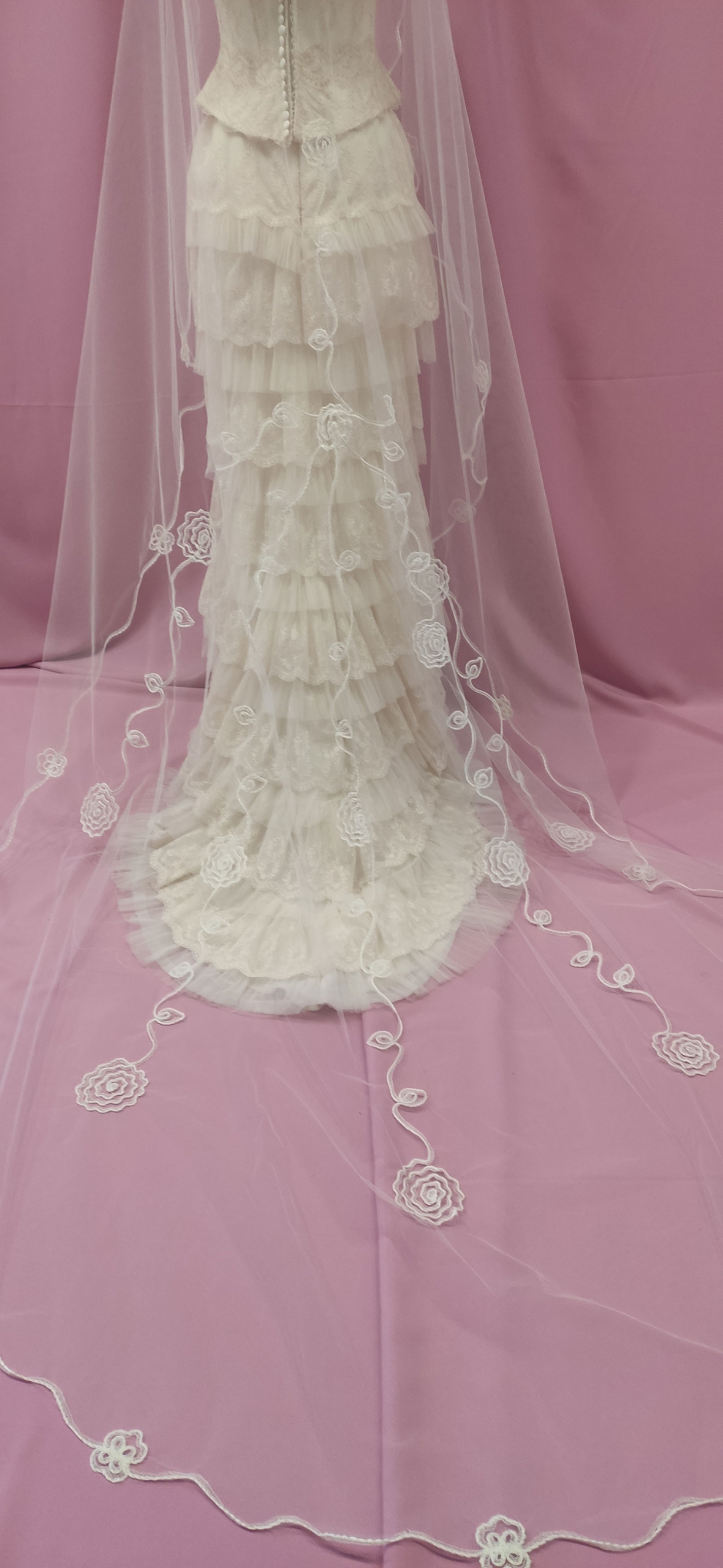 Velo ilusión de Rosas matizadas en manila. Medidas: 2×3