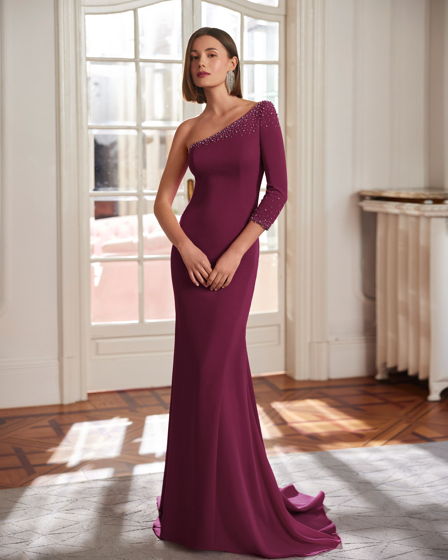VESTIDO CEREMONIA ASIMETRICO CON MANGAS DESMONTABLES